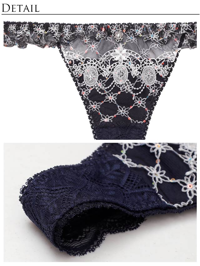 Tバック/クロッチ当て布:有/フロント透け:一部あり(両脇透け)