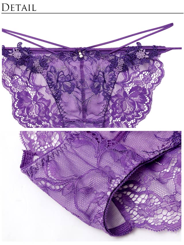 オールレースカットストリング育乳脇高ブラジャー&バック透けフルバックショーツ