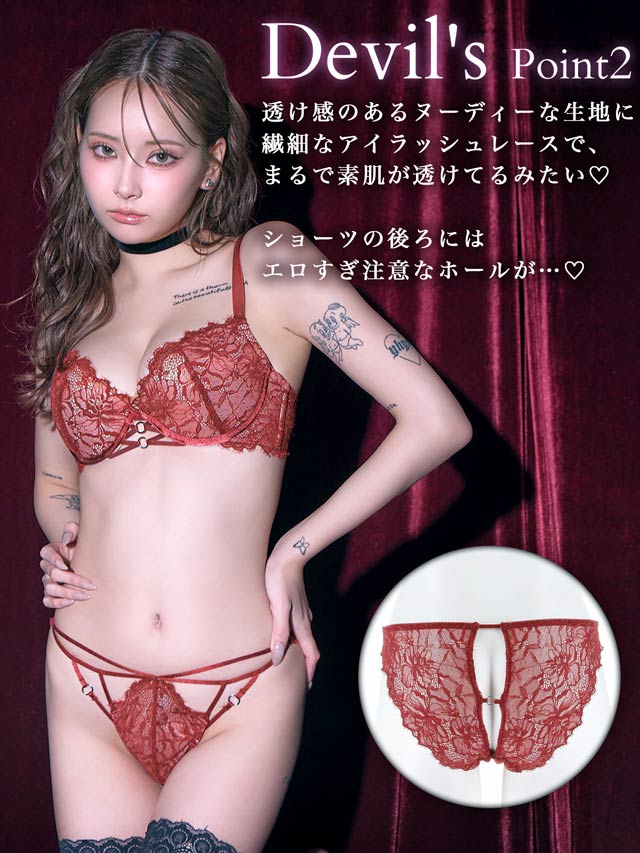 【PyunA.プロデュース/Enfel】レースストリングデビル ブラジャー&ショーツ