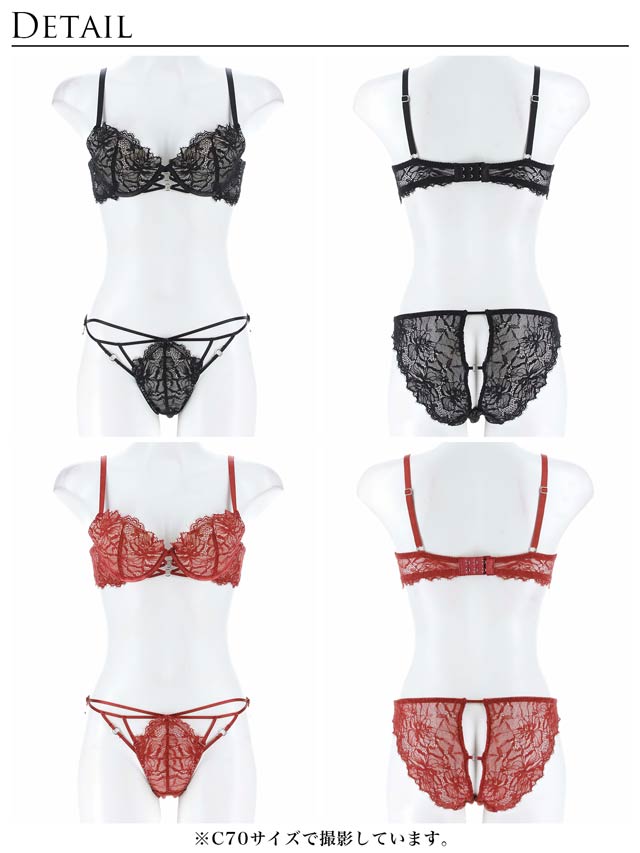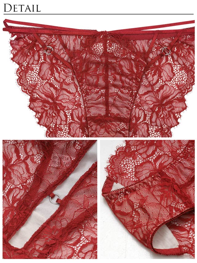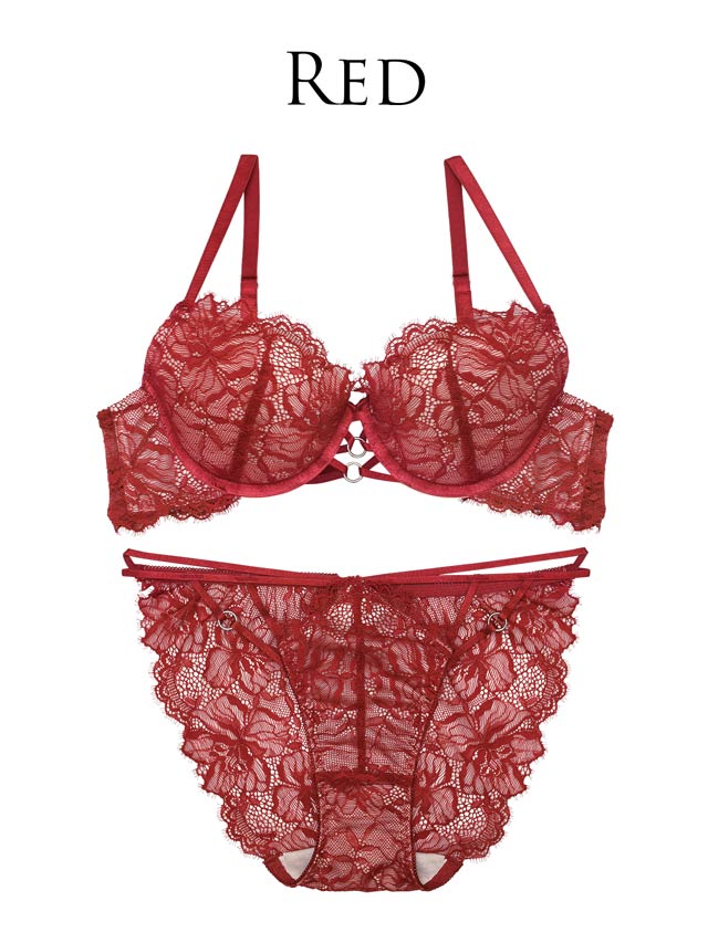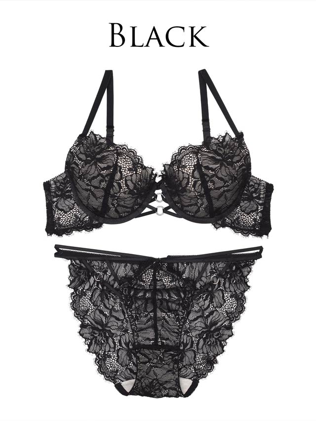 オールレースカットストリング育乳脇高ブラジャー&バック透けフルバックショーツ