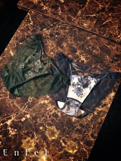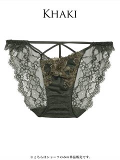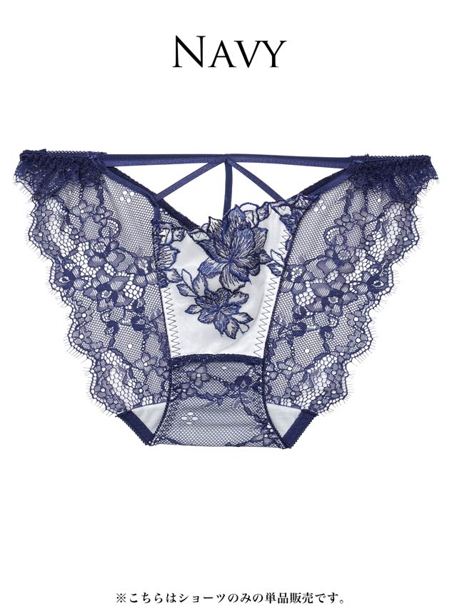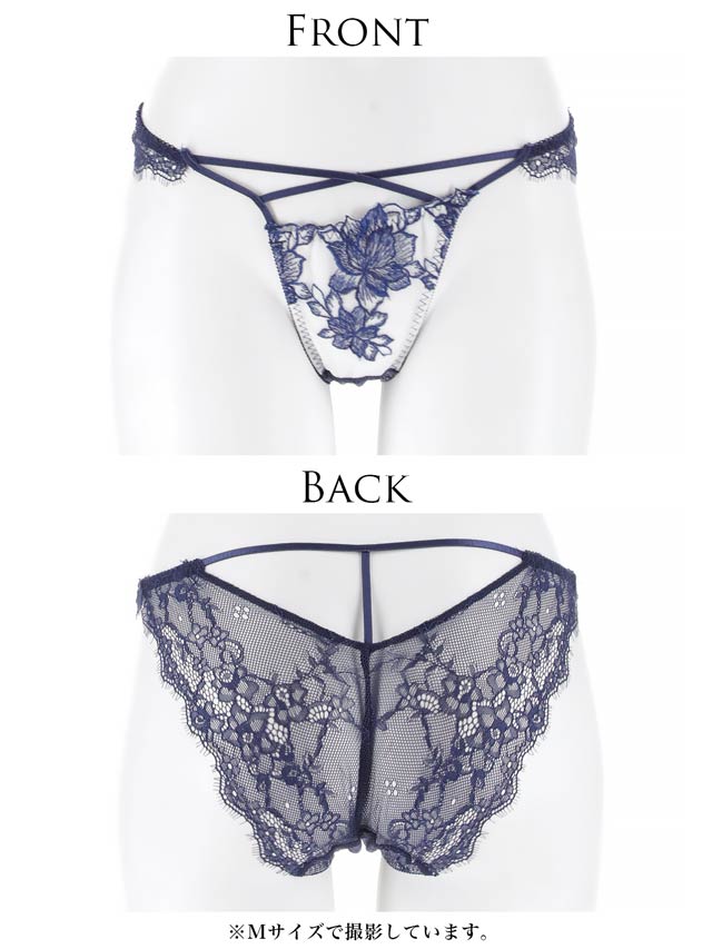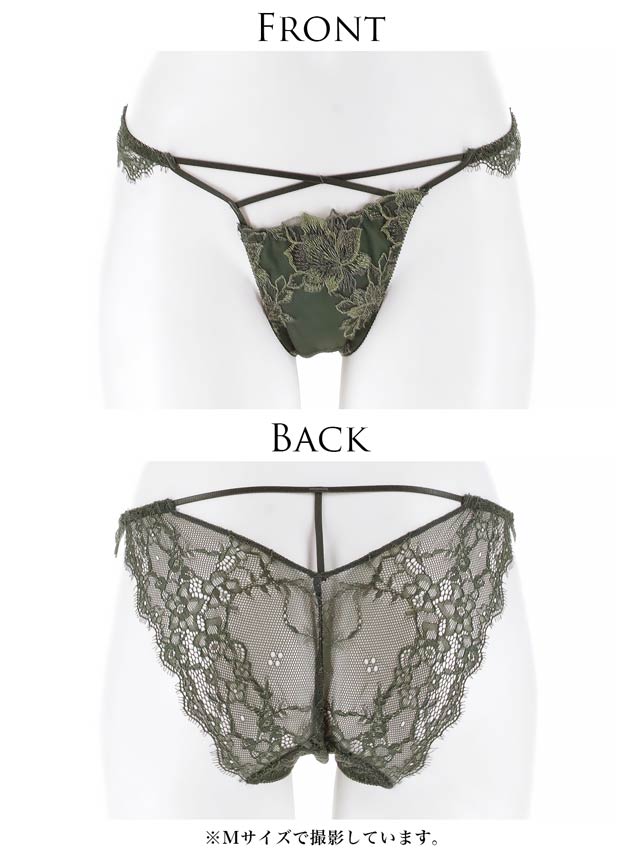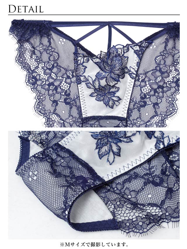オールレースカットストリング育乳脇高ブラジャー&バック透けフルバックショーツ