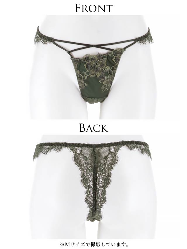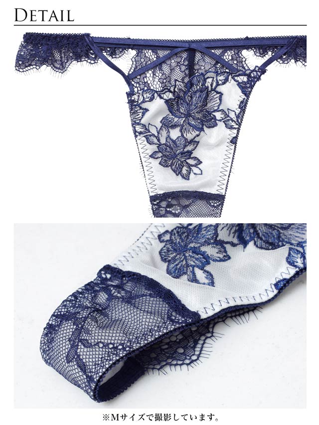 オールレースカットストリング育乳脇高ブラジャー&バック透けフルバックショーツ