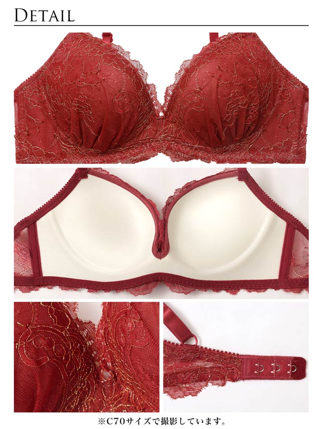 ブラジャー:3/4カップ/ワイヤー:無/ホック:バック1段3列