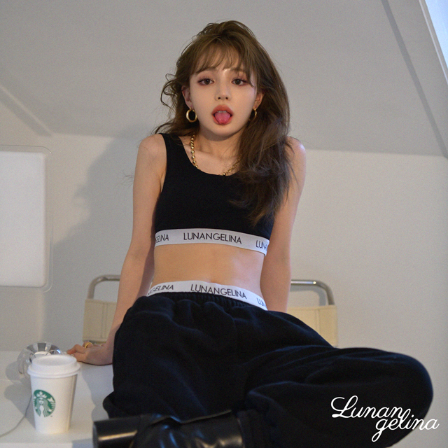 【lunangelina】Logo tape sporty Bra&shorts/White