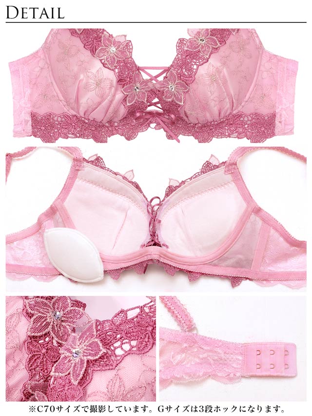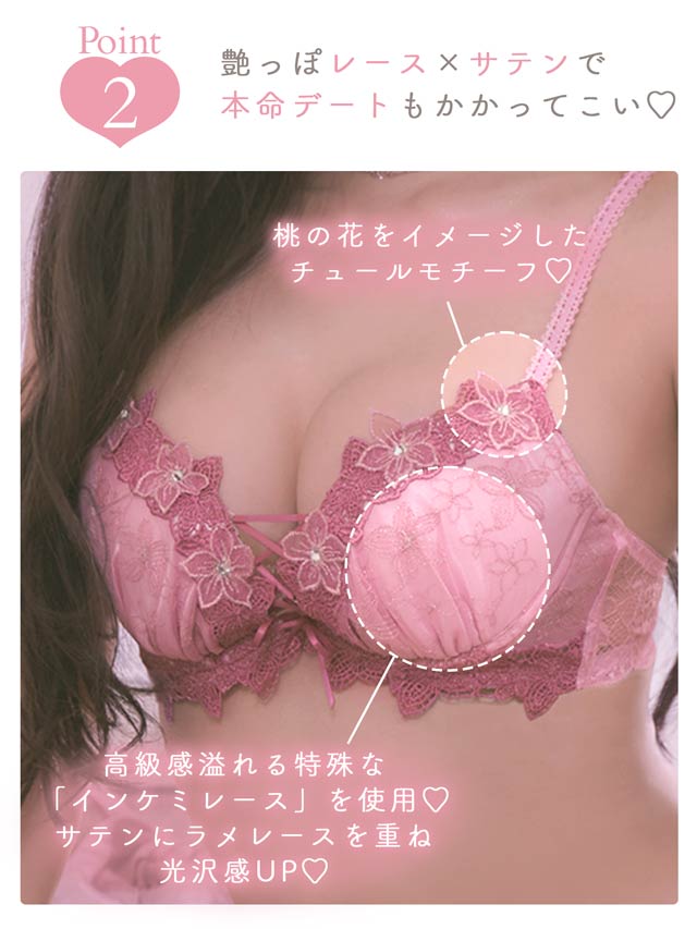 ブラジャー中心は編み上げリボンデザインで、しっかりと谷間をメイクしてくれます!