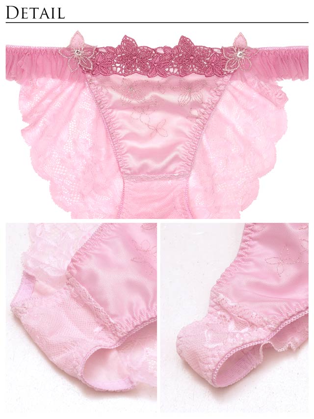 フルバック/Tバック脇はふんわりチュールプリーツをたっぷりとギャザー寄せ◎着用するたびにテンション上がること間違いなしです!