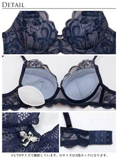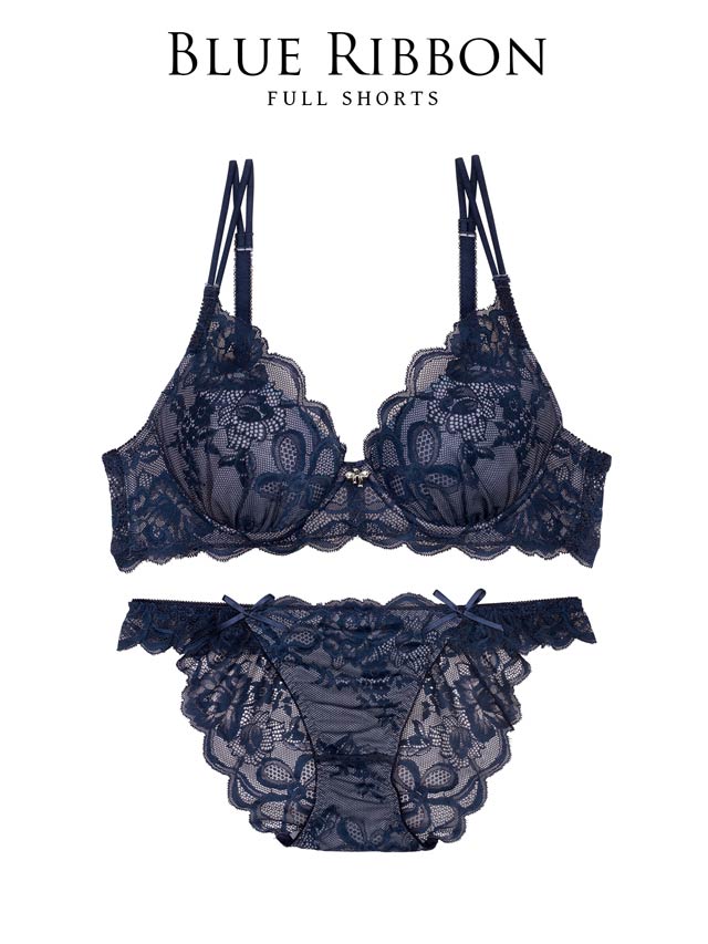 ダスティブルームエンブロイダリー育乳脇高ブラジャー&バック透けフルバックショーツ