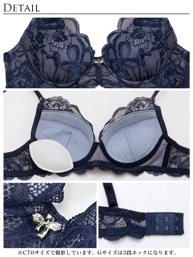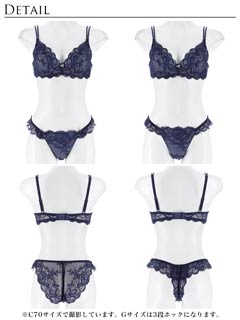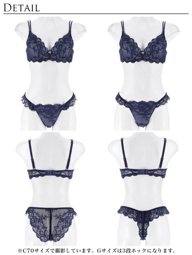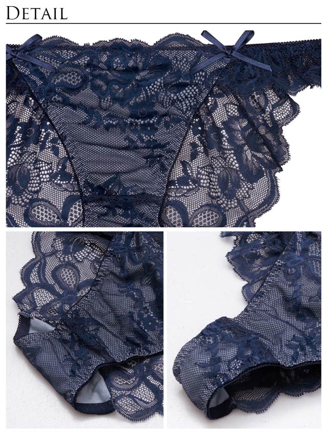 オールレースカットストリング育乳脇高ブラジャー&バック透けフルバックショーツ