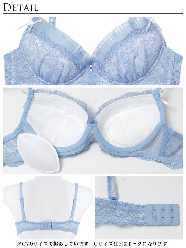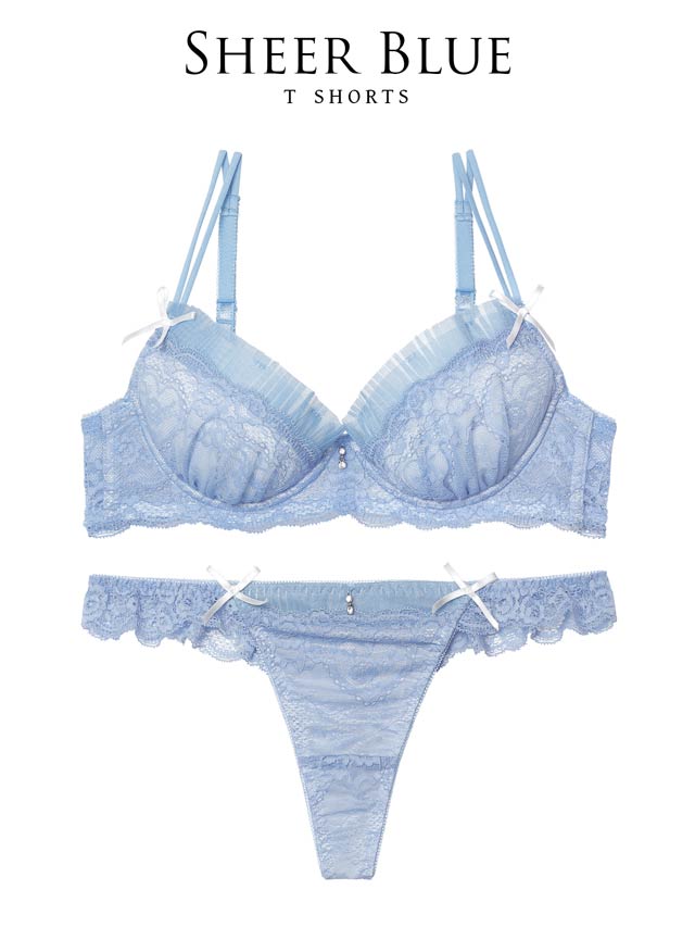 10/22新作!【伊藤桃々プロデュース/Rosem】シアープリーツブラセット/シアーブルー