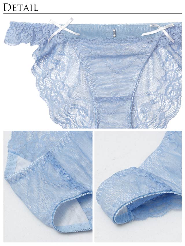 オールレースカットストリング育乳脇高ブラジャー&バック透けフルバックショーツ