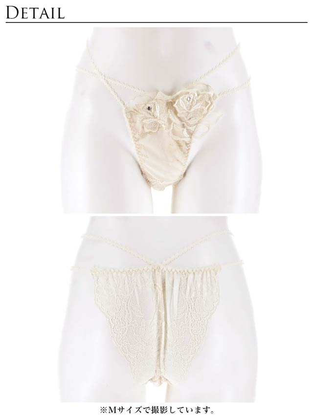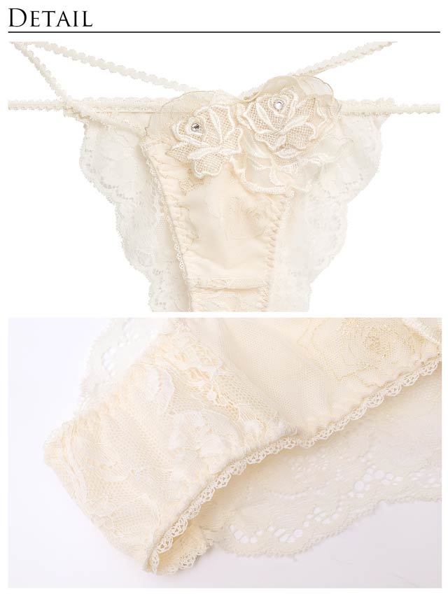 オールレースカットストリング育乳脇高ブラジャー&バック透けフルバックショーツ