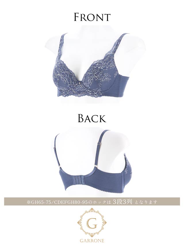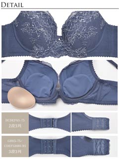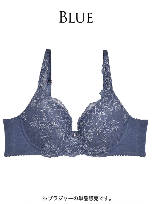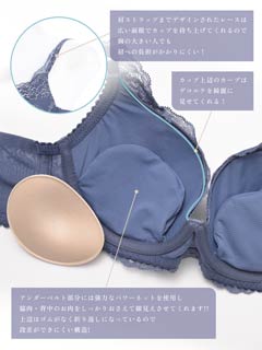 アンダーベルト部分にはパワーネットを使用し、下厚パットと肩ストラップまでデザインされたレースで下から胸を持ち上げ胸を綺麗に魅せてくれるので、身体のラインが出やすいピタッとしたニット等にもうってつけ。
