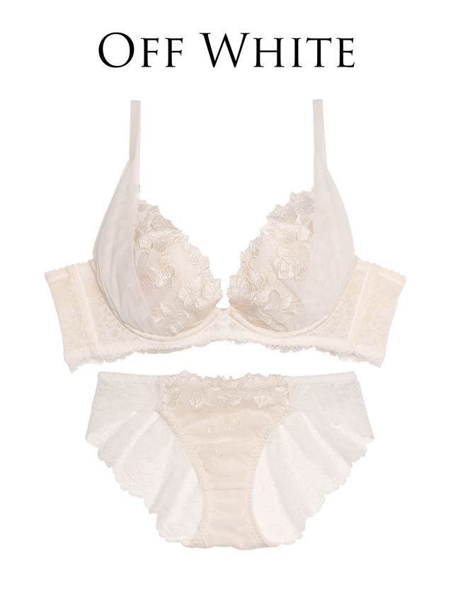 オールレースカットストリング育乳脇高ブラジャー&バック透けフルバックショーツ