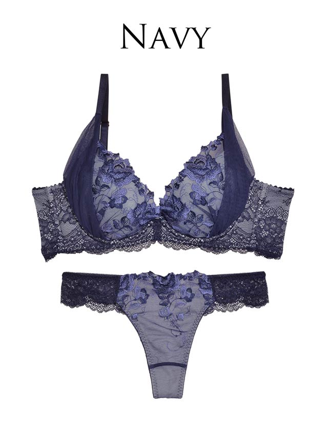 11/8再販!ロマンティックベルローズ育乳脇高ブラジャー&バック透けフルバックショーツ[激売れ]