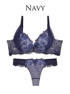 フロレゾンローズレース育乳脇高ブラジャー&サイド紐バック透けフルバックショーツ