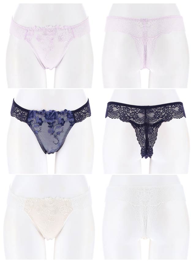 オールレースカットストリング育乳脇高ブラジャー&バック透けフルバックショーツ