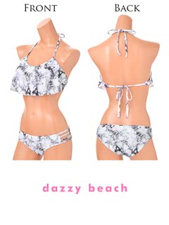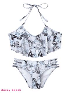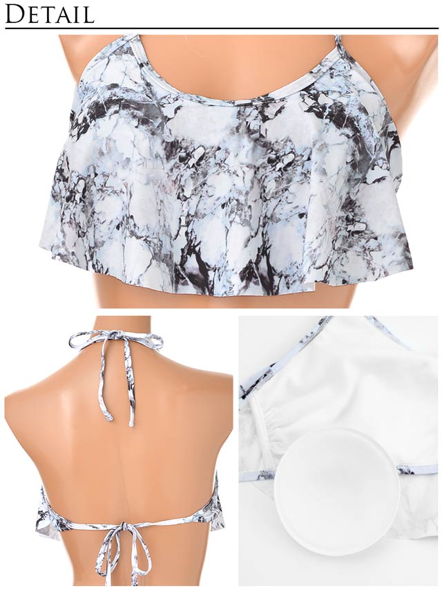 【2点セット】大理石柄プリントフレアホルタービキニ/水着【dazzy beach】