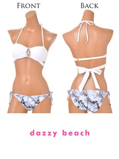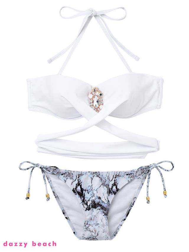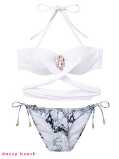 【2点セット】[2way]ビジュー大理石柄クロッシーホルタービキニ/水着【dazzy beach】