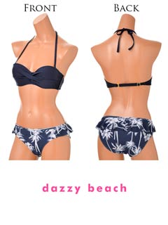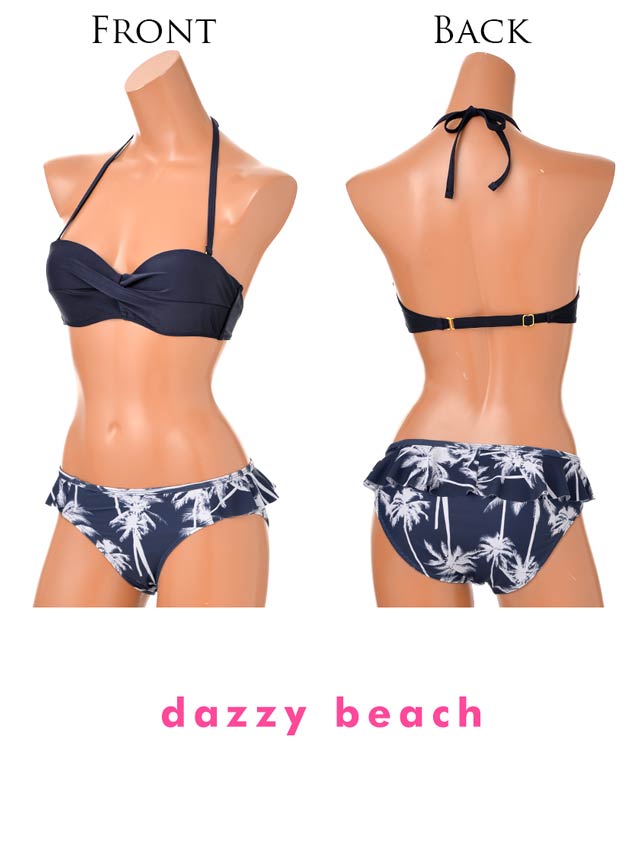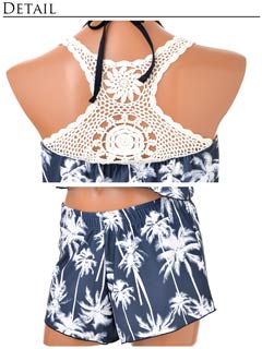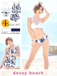 【4点セット】トップス&ショートパンツ付きパームツリー柄ビキニ【dazzy beach】