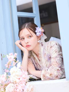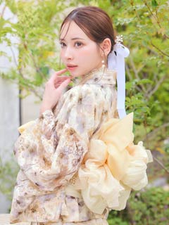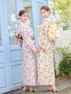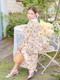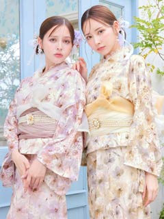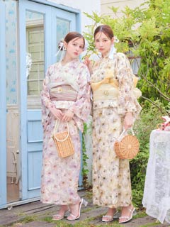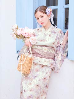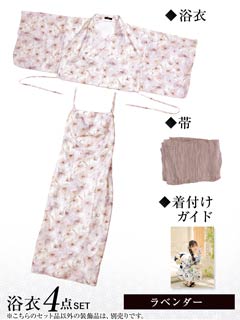 [ワンピース浴衣]水彩パステル花柄レース浴衣[4点SET]【YUKATA by dazzy 2025】