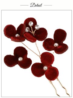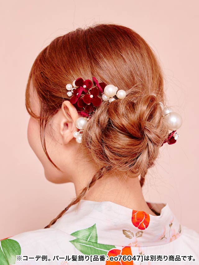 [3点SET]深紅小花ビジュー髪飾り【2025年新作/YUKATA by dazzy】