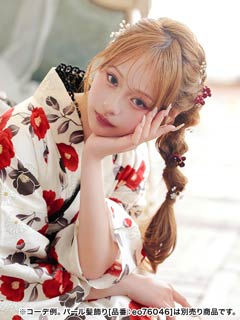 [2点SET]パステル縦縞×山茶花浴衣【YUKATA by dazzy 2025】