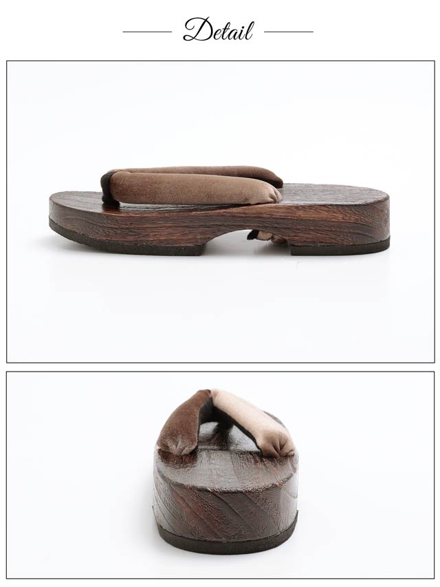 味のある焦げ茶色の桐台に同系のバイカラー配色がアクセントになった下駄。無地のシンプルなデザインが年齢や流行りを問わず履いていただける万能な1足◎ 鼻緒や裏地など肌に当たる部分は、柔らかい起毛素材となっているので痛くなりにくいのも嬉しいポイントです。