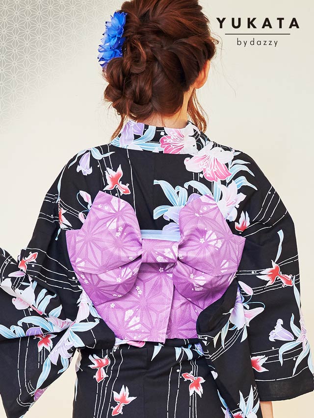 百合柄浴衣3点セット[2017年新作/YUKATA by dazzy]