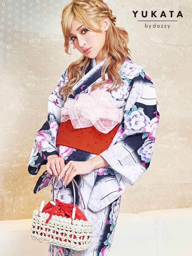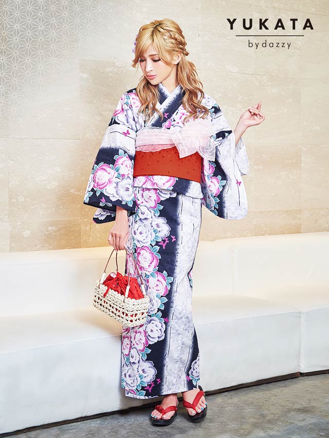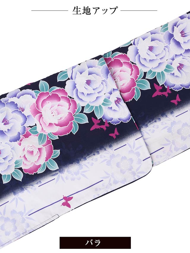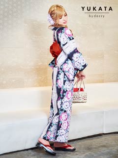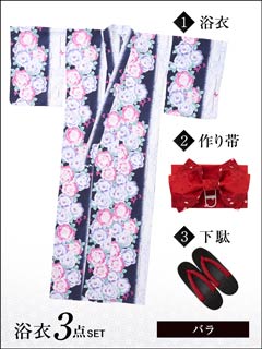 薔薇柄浴衣3点セット[2017年新作/YUKATA by dazzy]