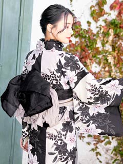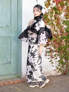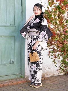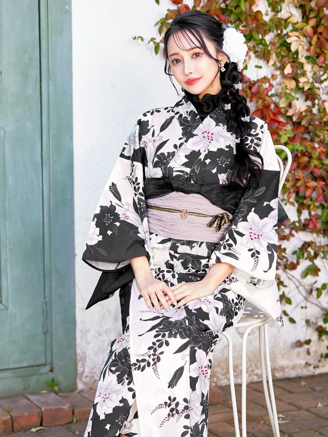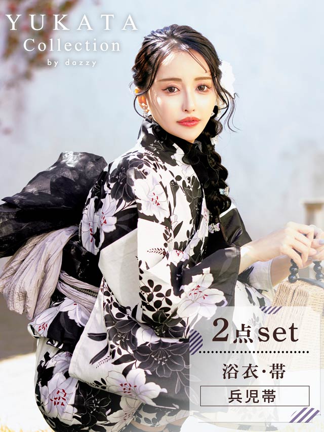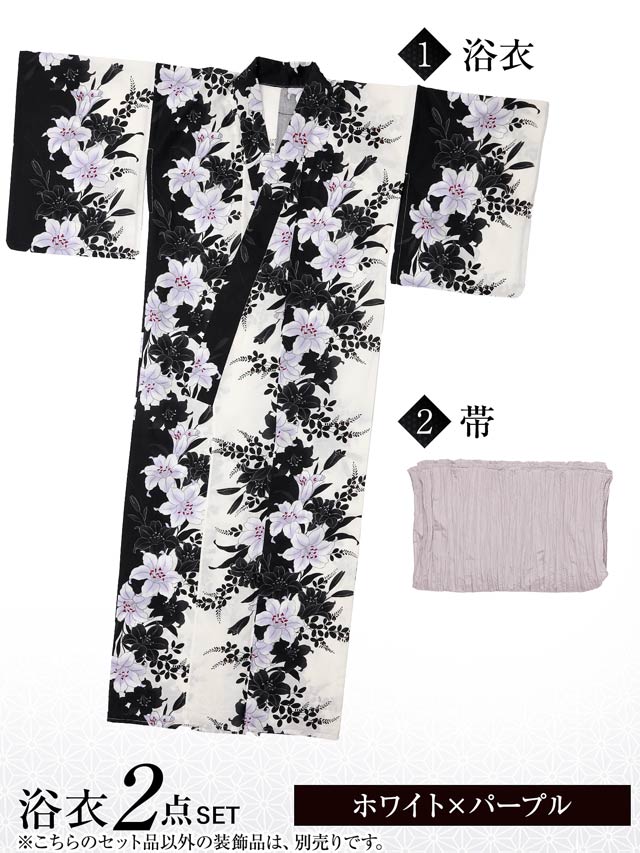 [2点SET]ディープホワイト百合柄浴衣【YUKATA by dazzy 2025】