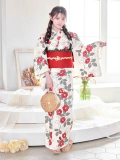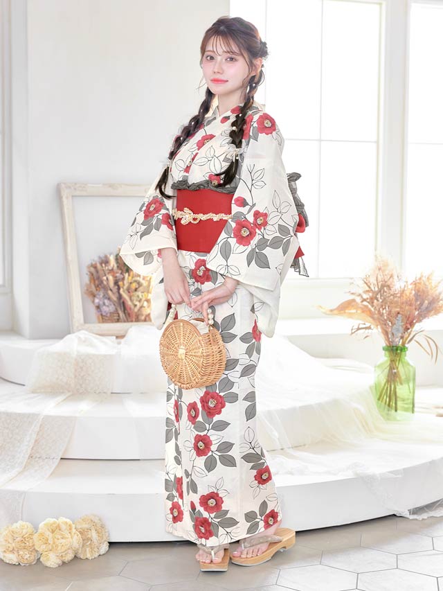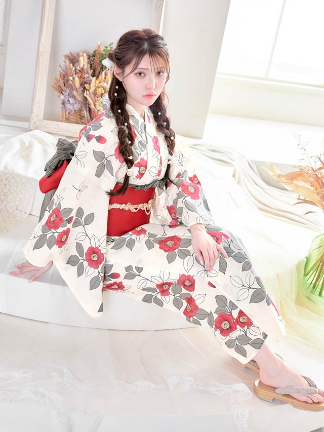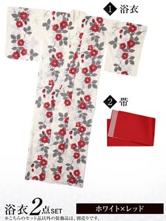 [2点SET]白地×赤椿柄浴衣【YUKATA by dazzy 2025】