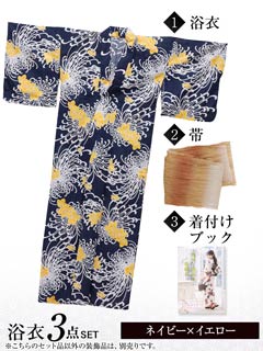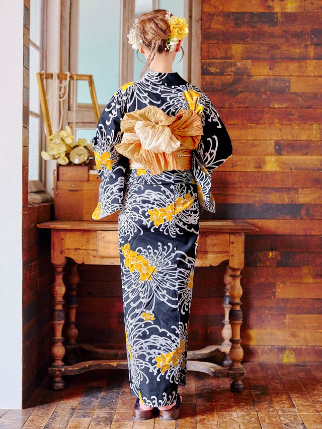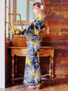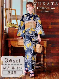 [3点SET]濃紺×乱れ菊柄浴衣【2025年新作/YUKATA by dazzy】