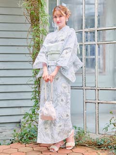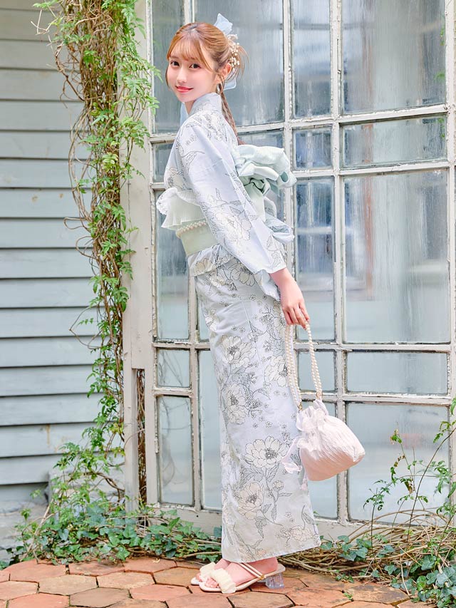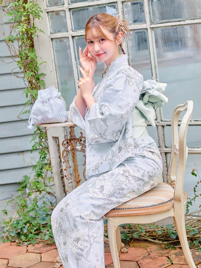 [3点SET]パステル線画アネモネ柄浴衣【2025年新作/YUKATA by dazzy】