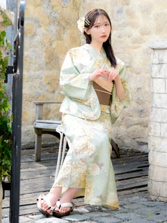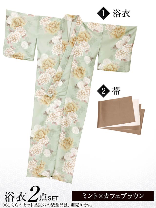 [2点SET]薄荷色牡丹柄浴衣【YUKATA by dazzy 2025】