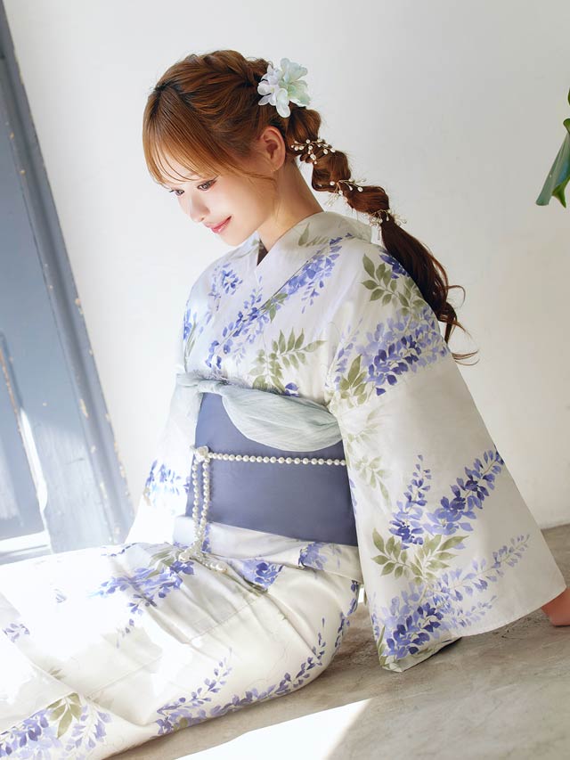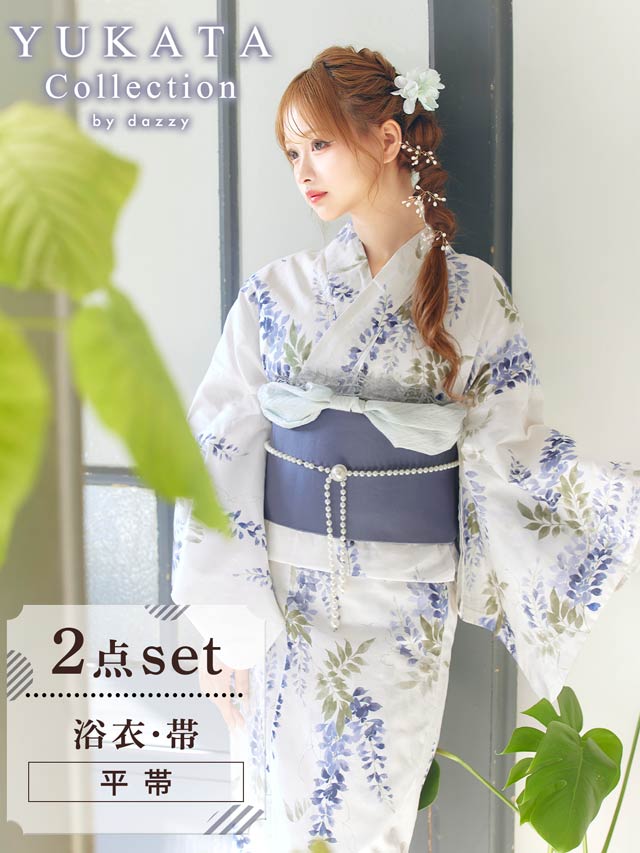 [2点SET]白地×青藤柄柄浴衣【YUKATA by dazzy 2025】