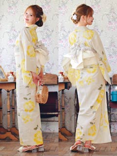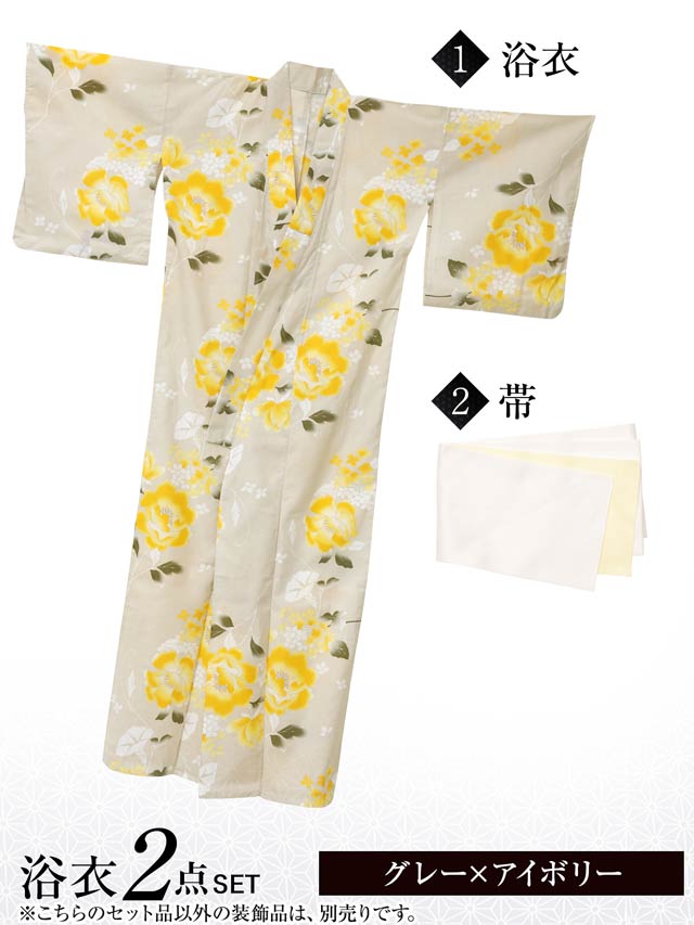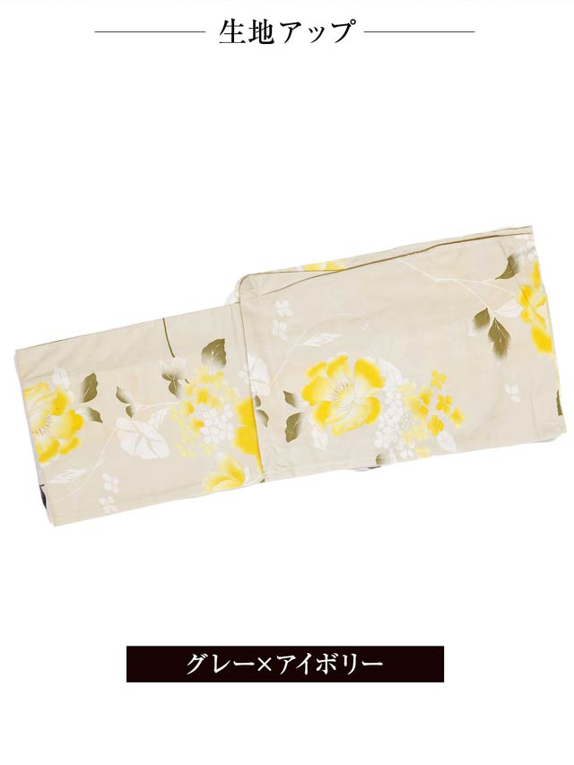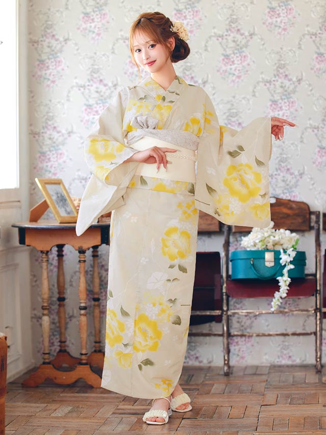 レトロモダン黄色芙蓉柄浴衣【2025年新作/YUKATA by dazzy】