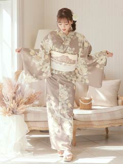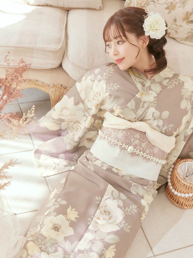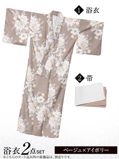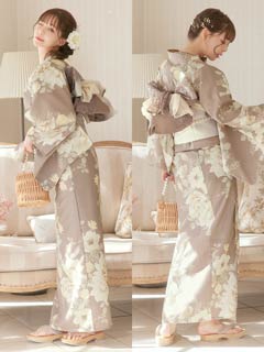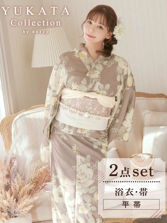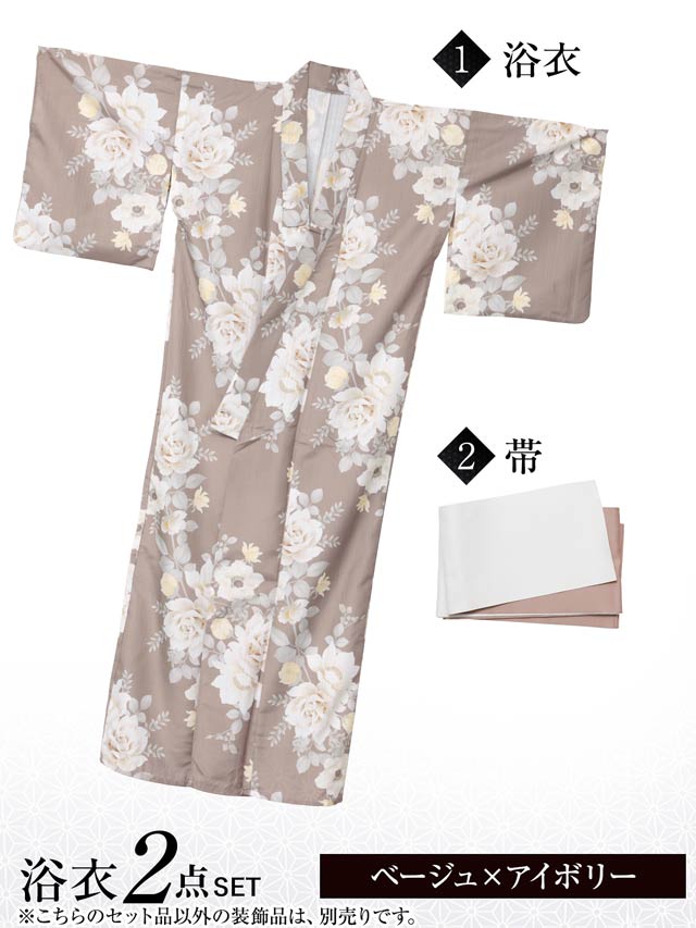 [2点SET]ダスティー白薔薇牡丹柄浴衣【YUKATA by dazzy 2025】