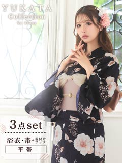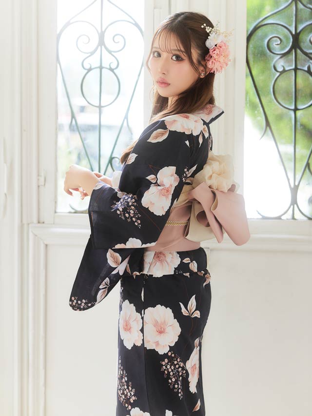 [3点SET]濃紺クリスマスローズ柄浴衣【2025年新作/YUKATA by dazzy】