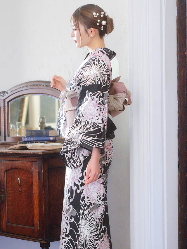 [3点SET]濃紺×乱れ菊柄浴衣【2025年新作/YUKATA by dazzy】