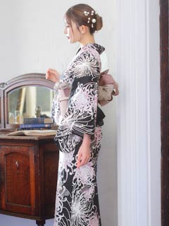 [2点SET]ダスティー白薔薇牡丹柄浴衣【YUKATA by dazzy 2025】