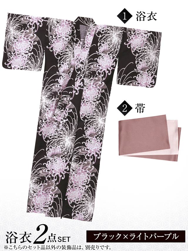 [2点SET]淡紫乱菊柄浴衣【YUKATA by dazzy 2025】