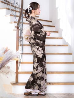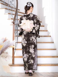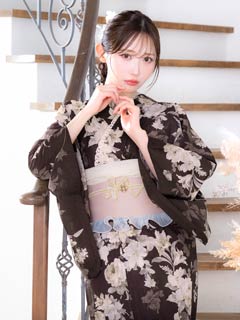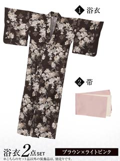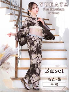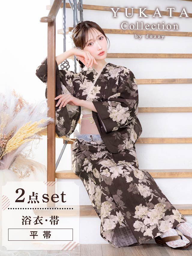 [2点SET]褐色地×クラシック花柄柄浴衣【YUKATA by dazzy 2025】