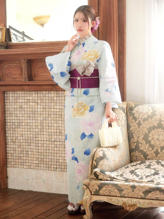 [3点SET]ニュアンス水彩薔薇柄浴衣【2025年新作/YUKATA by dazzy】