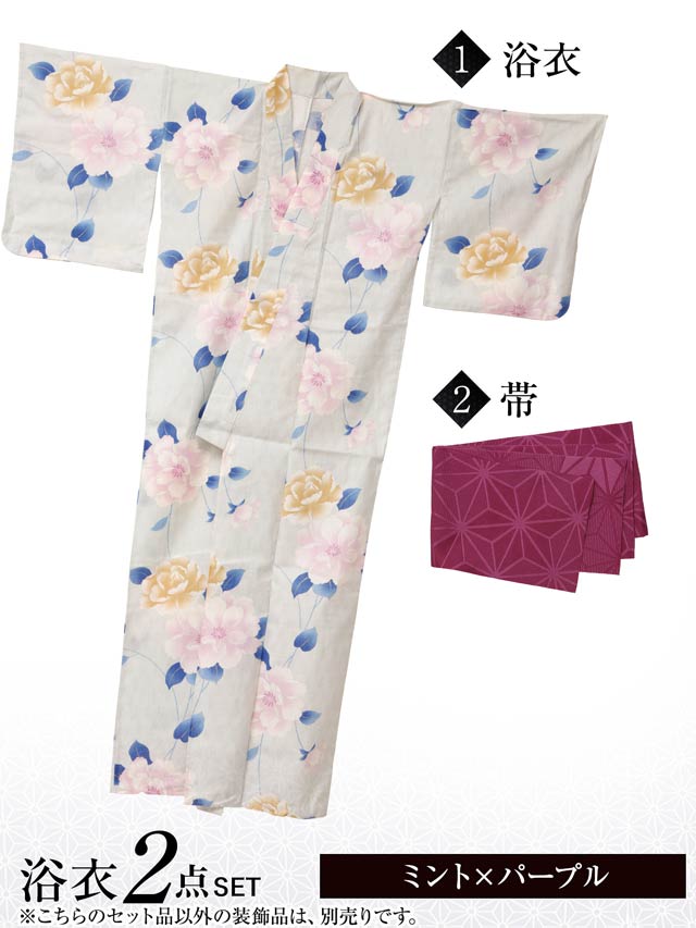 [2点SET]パステル縦縞×山茶花浴衣【YUKATA by dazzy 2025】