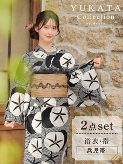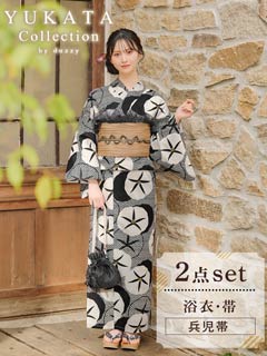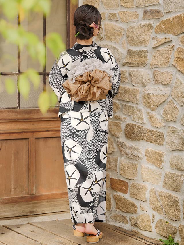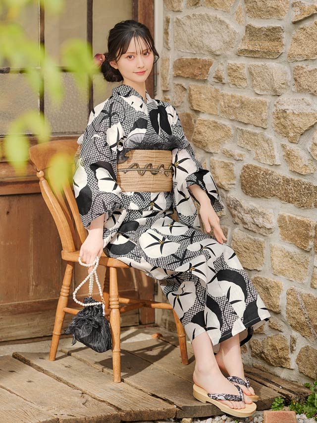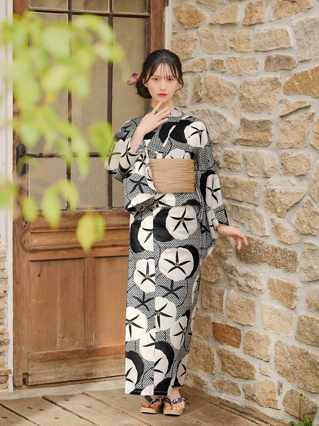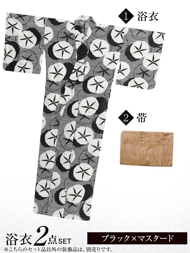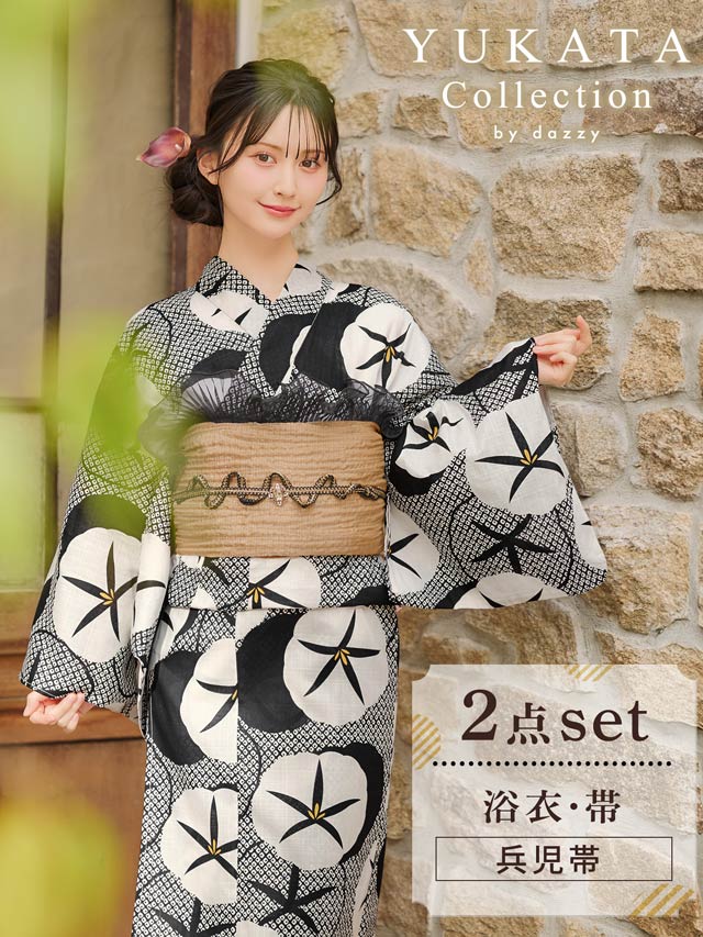 [2点SET]モノトーンレトロ朝顔柄浴衣【YUKATA by dazzy 2025】