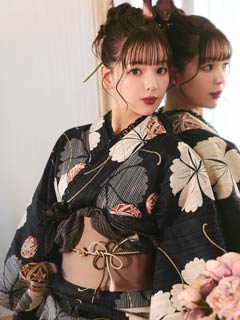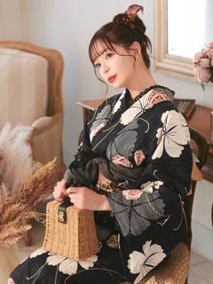 黒撫子×手鞠柄浴衣【2025年新作/YUKATA by dazzy】