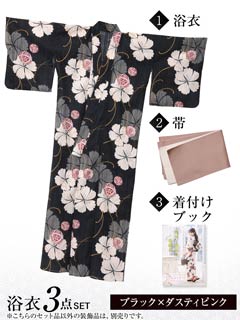 [3点SET]古典天竺牡丹柄浴衣【2025年新作/YUKATA by dazzy】