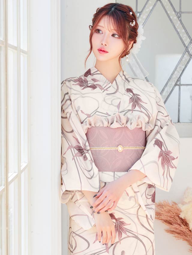[セパレート浴衣] ナチュラルダスティー金魚柄浴衣[4点SET]【YUKATA by dazzy 2025】