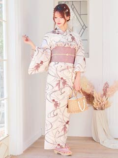[2点SET]褐色地×クラシック花柄柄浴衣【YUKATA by dazzy 2025】