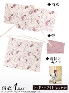 [セパレート浴衣] 黒地×百合柄浴衣[4点SET]【YUKATA by dazzy 2025】